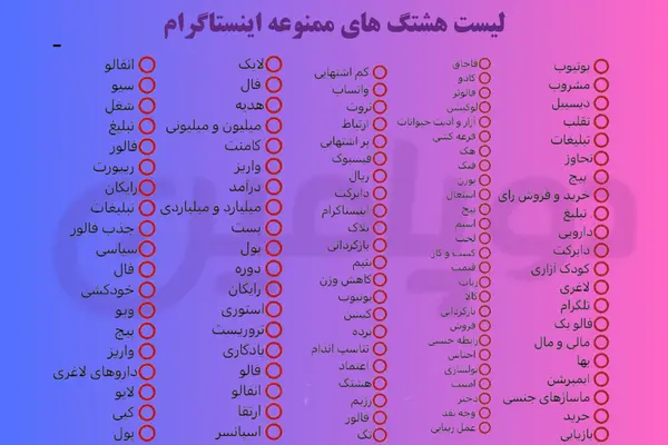 هشتگ های ممنوعه هر فصل تغییر میکنند (بهویژه در سال ۲۰۲۵). منابع فارسی مانند directam.ir و admin‑yar.com فهرستهای جدید هشتگ های بلاکشده را منتشر میکنند
