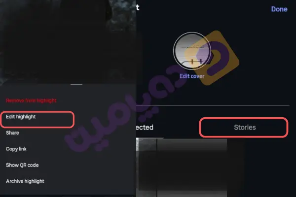 برای ویرایش هایلایت، کافی است روی آن در پروفایل خود کلیک کنید، سپس گزینه “Edit Highlight” را انتخاب کنید. از اینجا میتوانید استوریهای جدیدی اضافه کنید، استوریهای قدیمی را حذف کنید یا تصویر کاور و عنوان هایلایت را تغییر دهید.