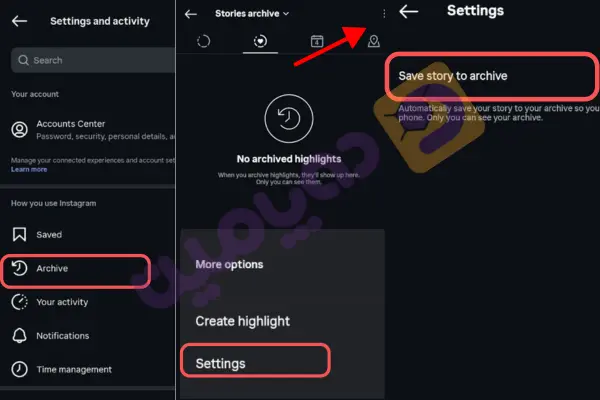مرحله اول: فعالسازی آرشیو استوریها (Story Archive)